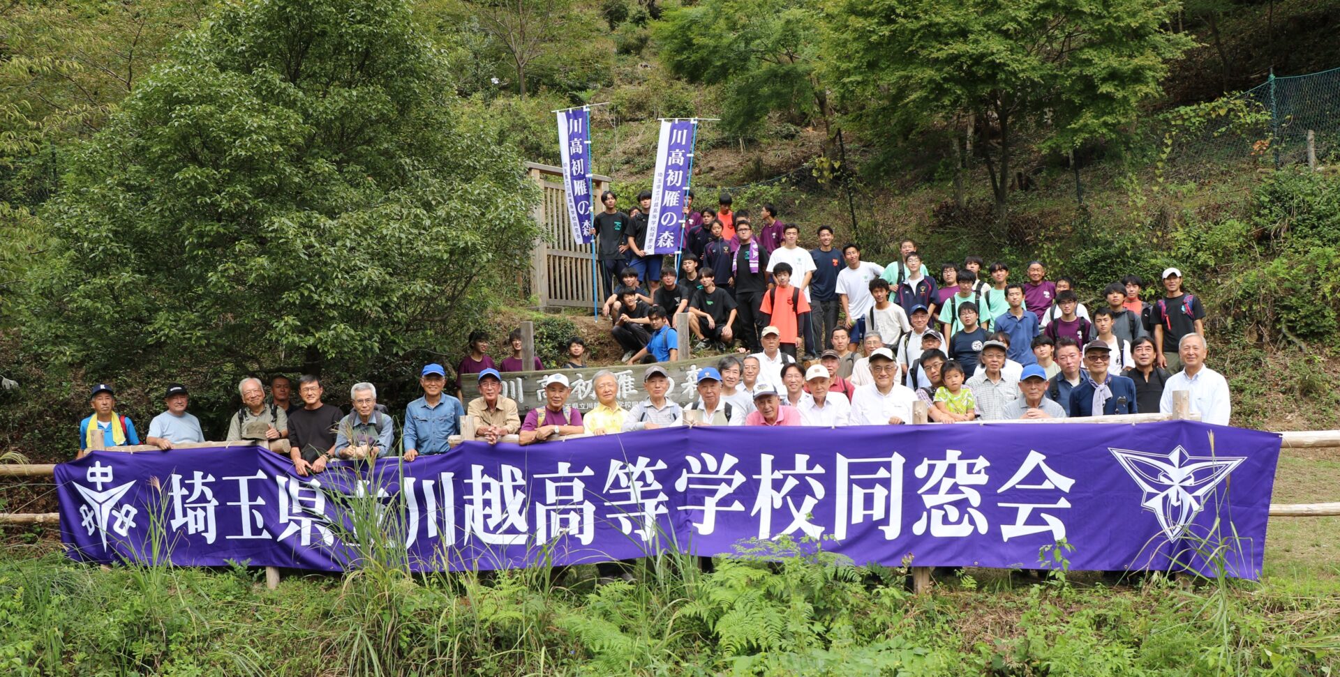根岸同窓会長をはじめとした同窓生34人と、学校側からは田中校長と瀧嶋教諭の引率の下、応援部、山岳部、生物部、新聞部、放送部、生徒会の生徒40人の、総勢74人と近年では最も多い参加者。