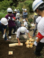 これまでの記録を振り返ると、平成30(2018)年の第7回植樹祭でほぼ予定していた植樹を終了。以降は「植樹祭」の名を冠しつつ、植樹地の整備を中心とする育樹の段階に入ってきている。令和元(2019)年の第8回植樹祭から、植樹地の下刈や遊歩道の整備に主力を置き、当初は遊歩道に木材チップを敷設する作業から始まった。その後、コロナ禍で2年中止。令和4(2022)年の第9回植樹祭より、今回まで4年継続して遊歩道へのウッドブロック敷設作業を行っている。