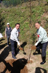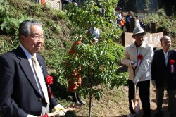 来賓の皆さまには記念植樹いただきました。記念撮影後、全員が山中に入り1時間ほど植樹に精を出しました。