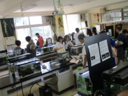 - 生物部。たくさんの水槽にはあちこちで採集した魚たちが。